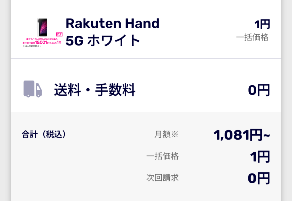 【補足】楽天モバイルで一括1円端末を購入した時の話