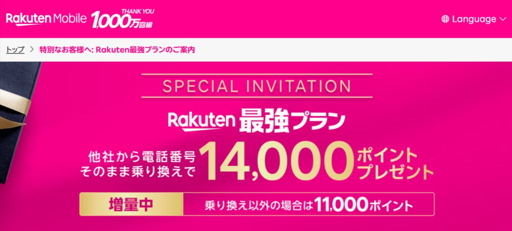 ※1 「1834」を適用して他社からの乗り換え(MNP)で申し込んだ場合、三木谷キャンペーンでの特典は8,000ポイントに減額