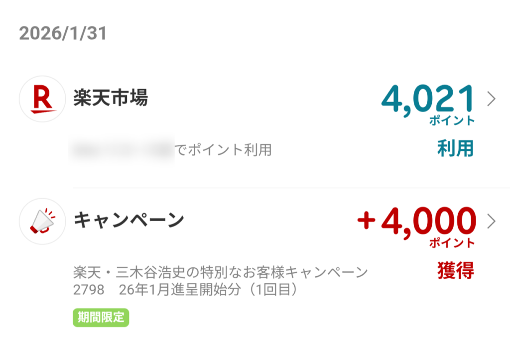 | 2026年1月31日 | 4,000ポイント付与(1回目) |