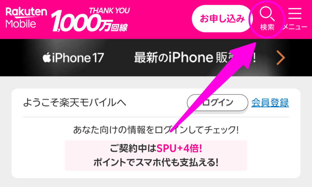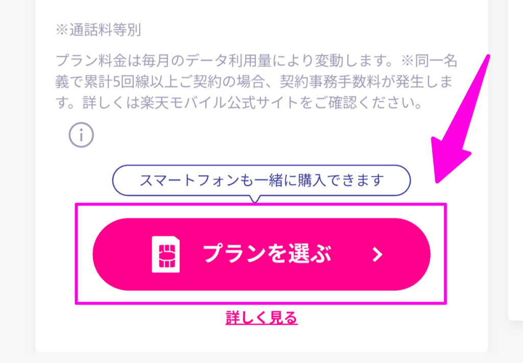以下のボタンより、楽天モバイルの公式サイトを開きます。
