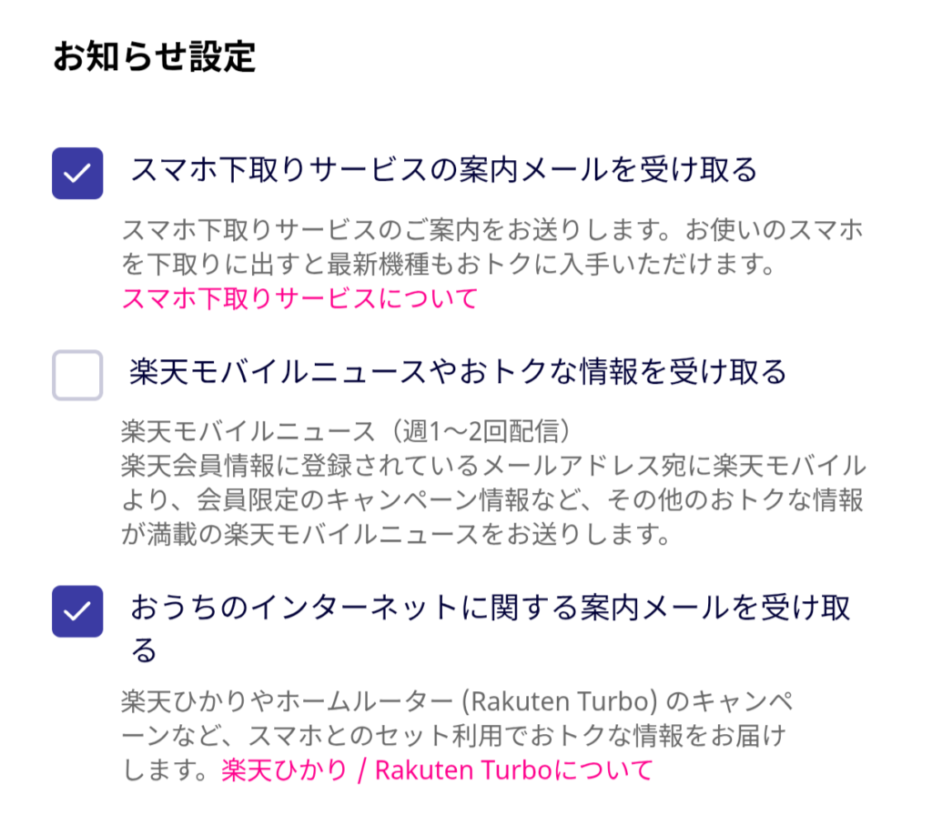 初期設定では、「スマホ下取りサービスの案内」と「おうちのインターネットに関する案内」にチェックが入っています。